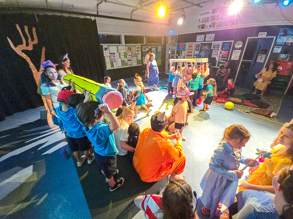 The Year 10 Drama students devised two Children's Theatre pieces called 'Just Add Colour' and 'Two Truths and a Spoon' which were based on reinforcing good values. The students performed them for Year 1 students from Kerikeri Primary School, who joined in with the engaging storytelling and interactive experience.